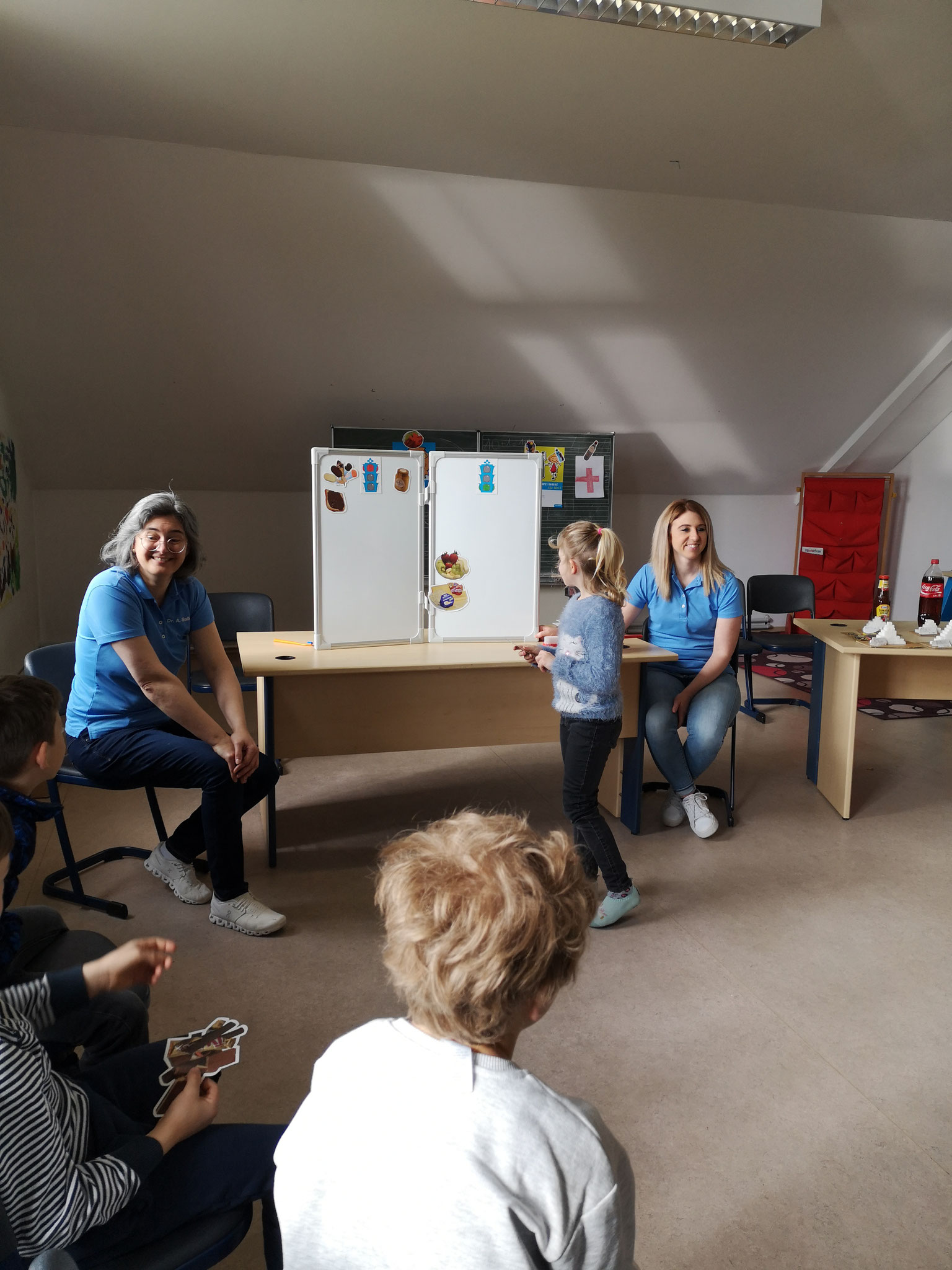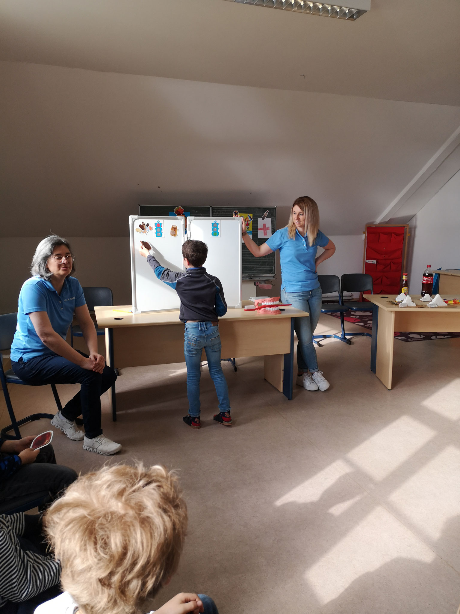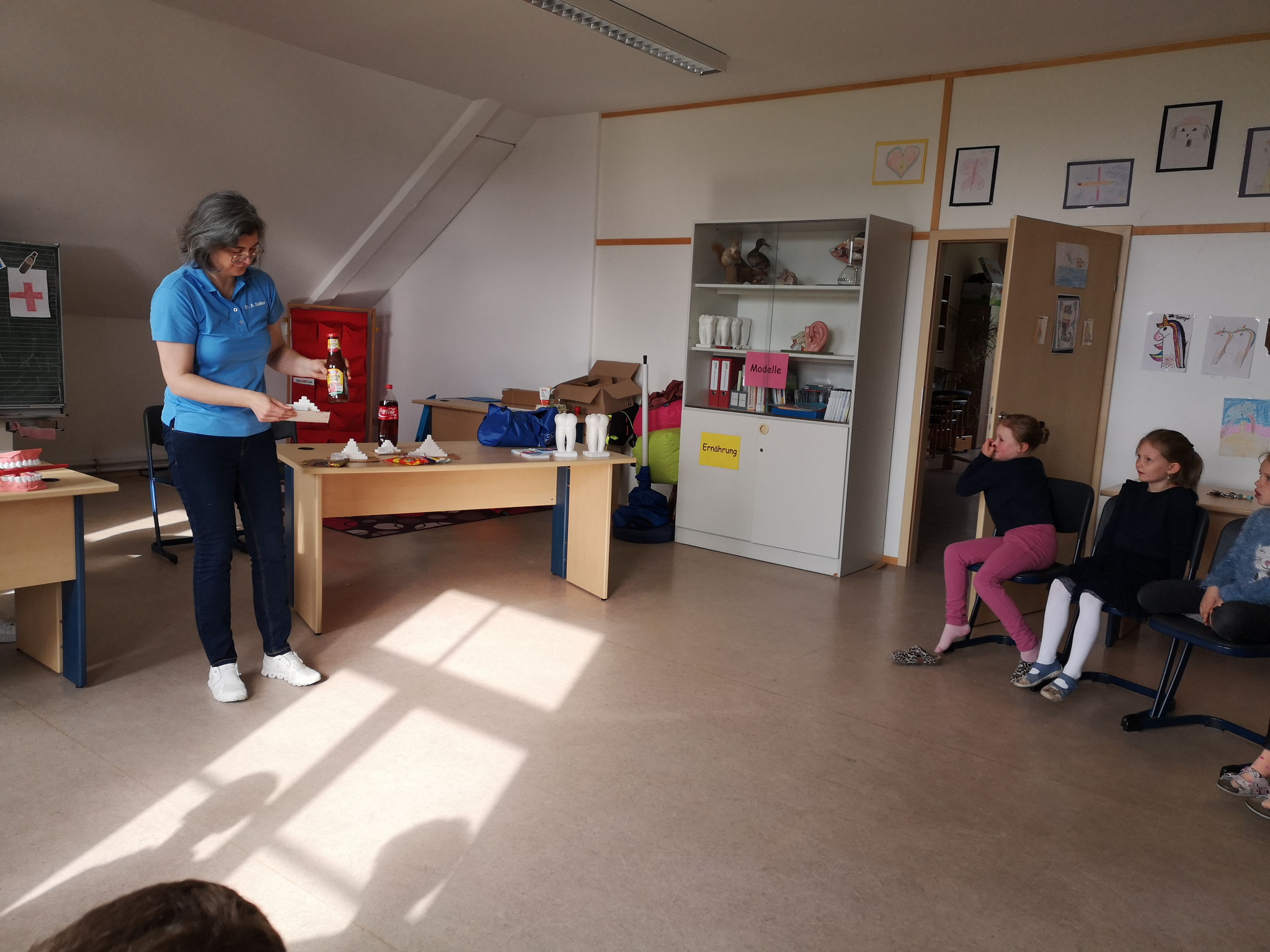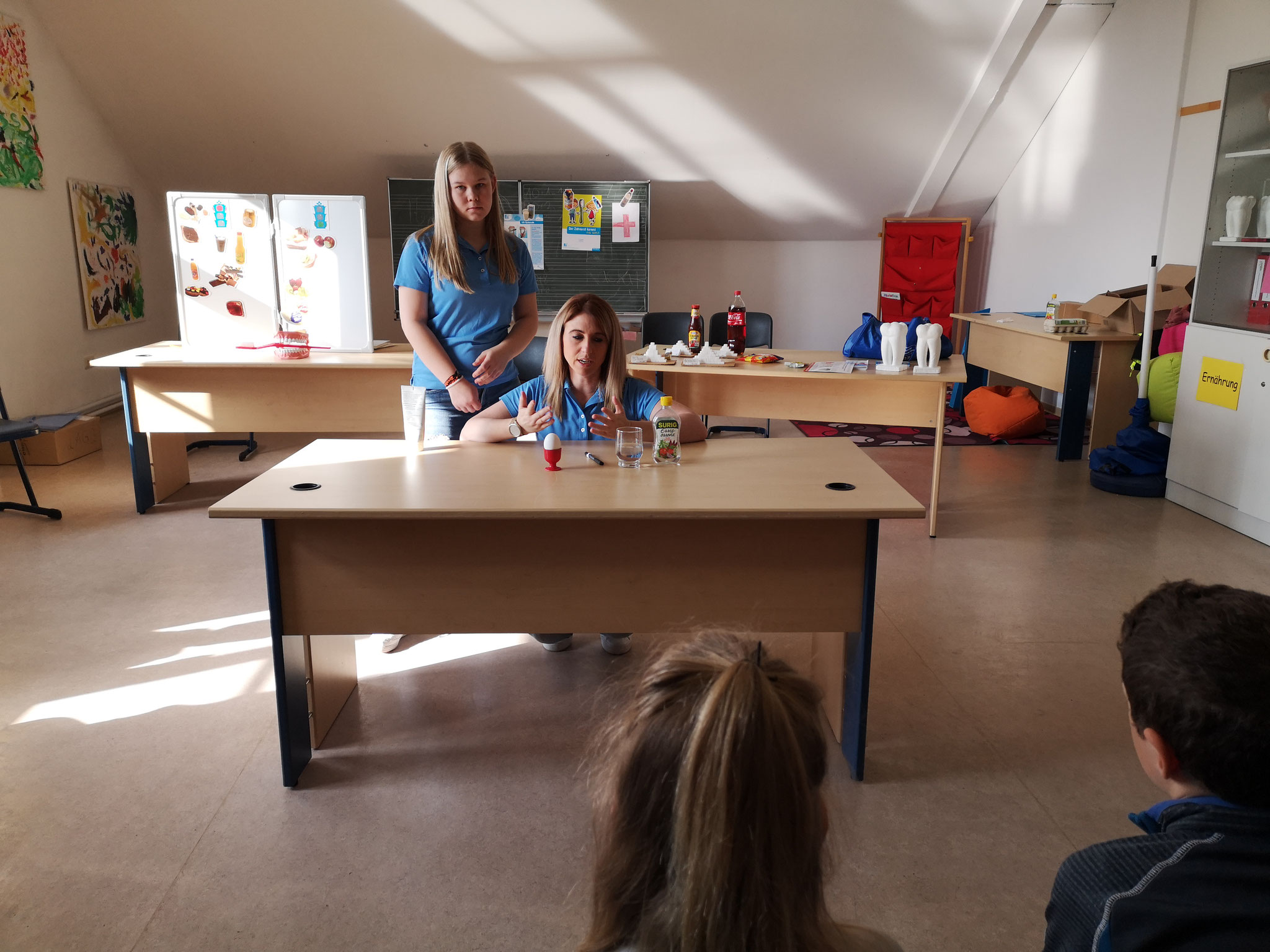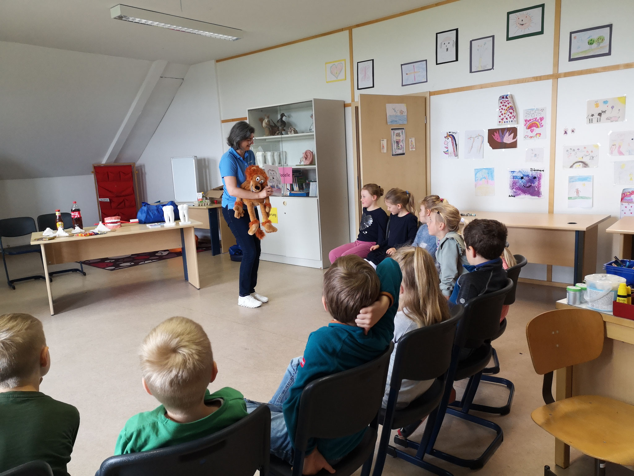 Am Dienstag, 16.05.2023 kam Frau Dr. Saller zusammen mit zwei Helferinnen in die Schule und sie gestalteten für jede der beiden ersten Klassen eine Stunde zur Zahngesundheit.